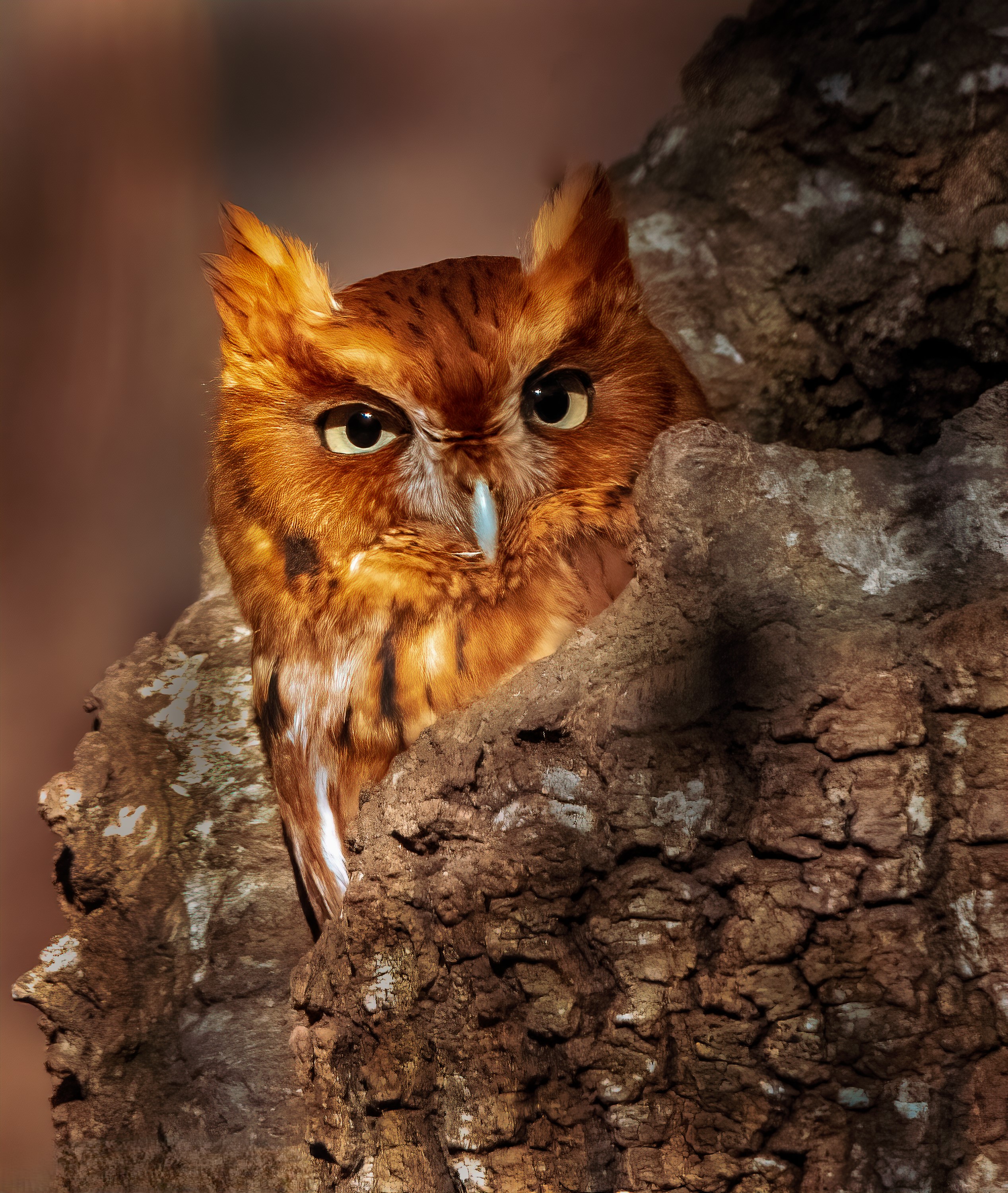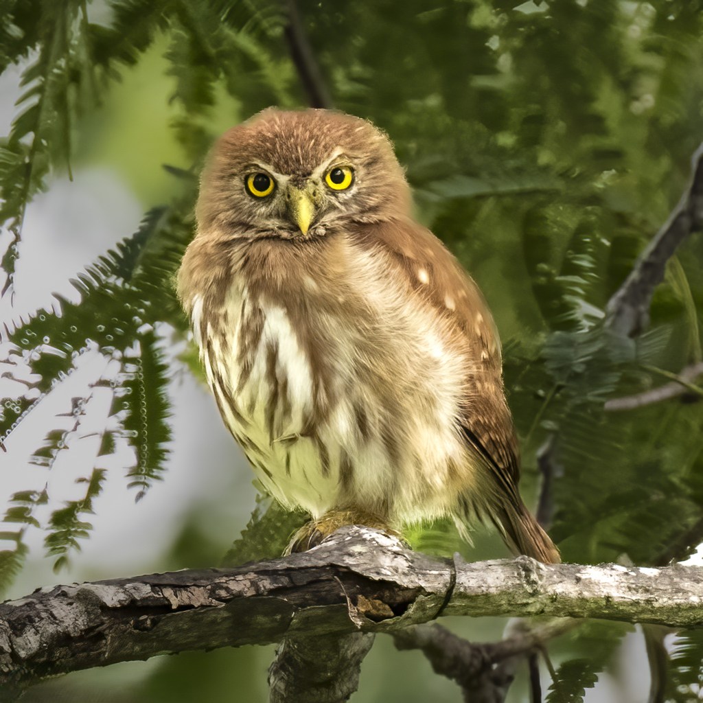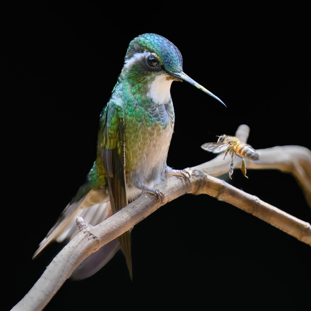 Spectacled OwlLeucistic Ruby-Throated Hummingbird